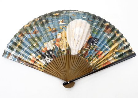 On the right side , white elephant, lions, deer, a variety of animals are painted, such as monkeys. On the left side, Phoenix, chickens, peacocks, a variety of birds are painted, such as turkey. It is painted in the painting method called "Masumegaki" that Jakuchu Ito was devised. This fan is that was printed on the right side.